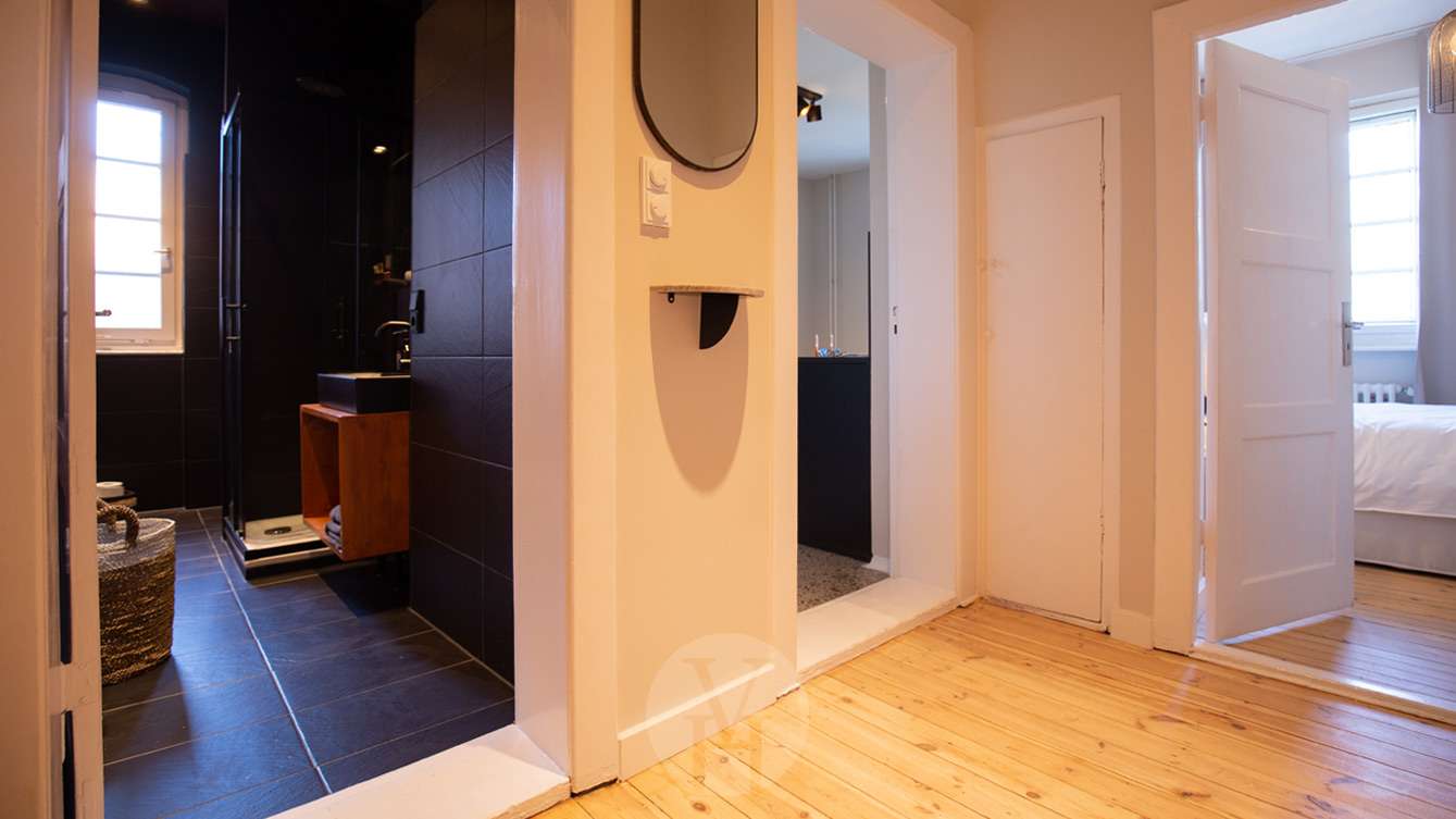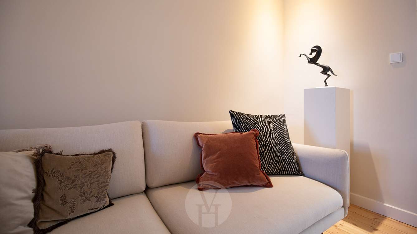 Reinigungsutensilien wie Staubsauger, Bügelbrett und Bügeleisen sowie Bettwäsche und Handtücher sind vorhanden.