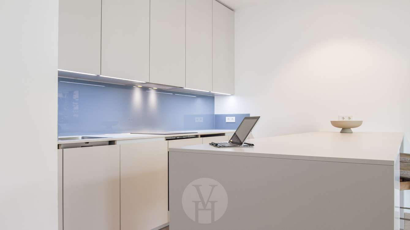 Auf einer Wohnfläche von 66 m² befinden sich ein helles Wohnzimmer mit offener Einbauküche und Kücheninsel, ein Schlafzimmer mit großem Doppelbett sowie ein Wannenbad mit separater Dusche. Ein großzügiger Balkon erweitert den Wohnbereich zusätzlich.