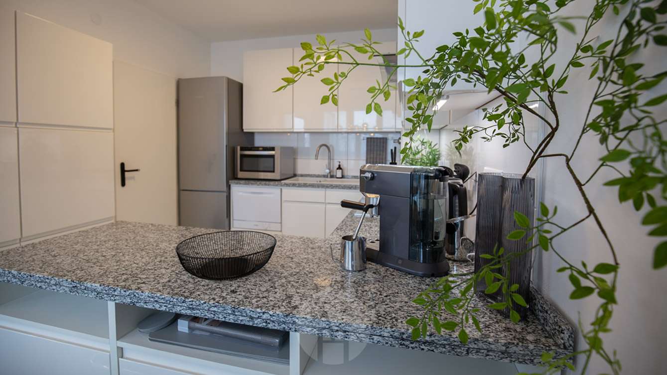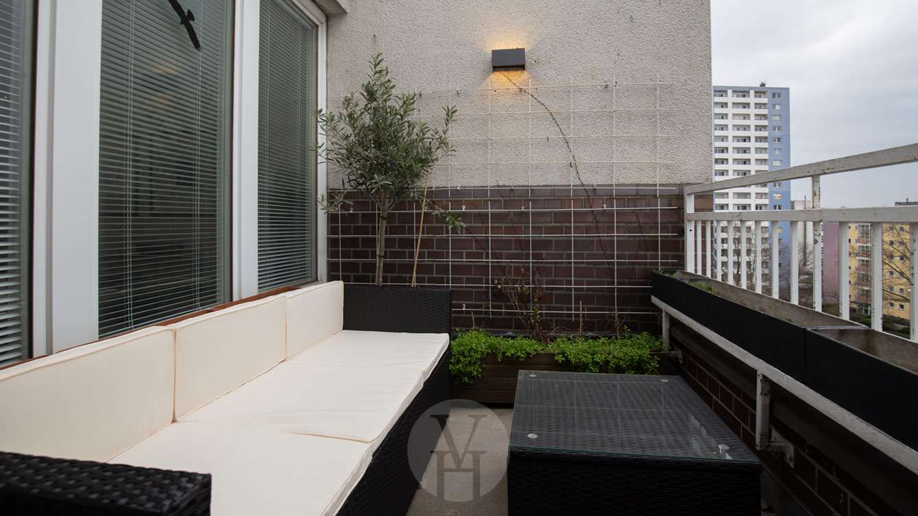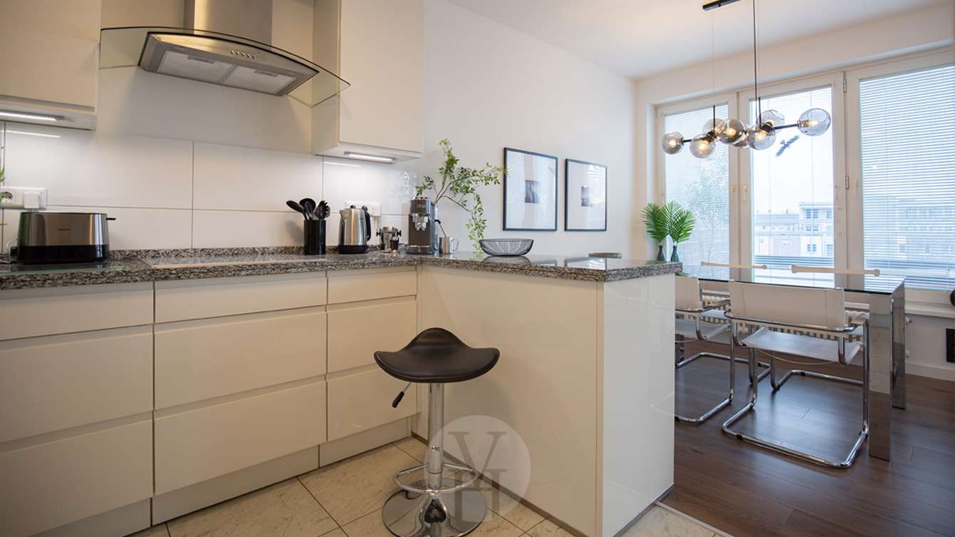 Die erhöhte Lage im 6. Obergeschoss bietet zudem eine angenehme Ruhe sowie einen freien Blick über die Stadt.
