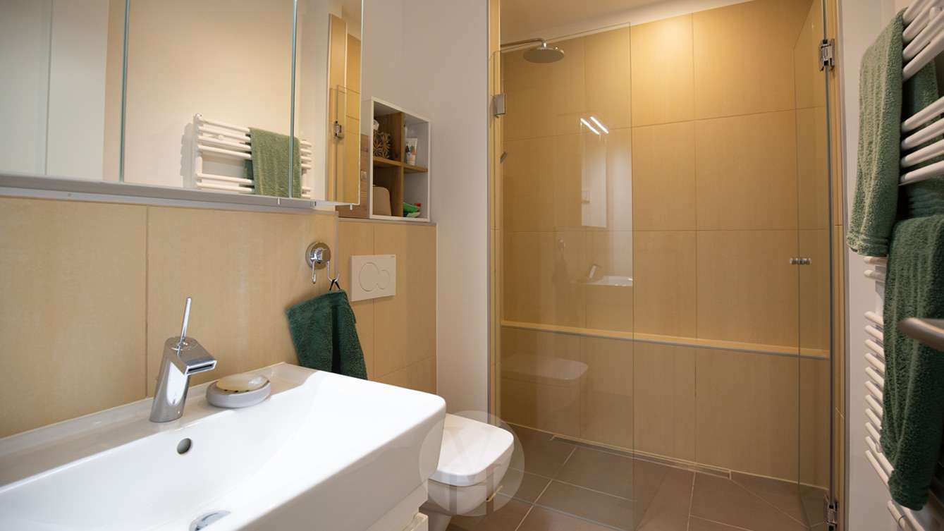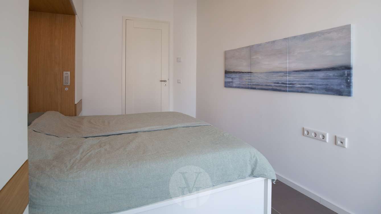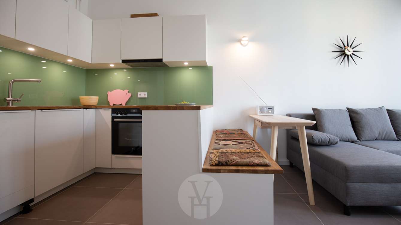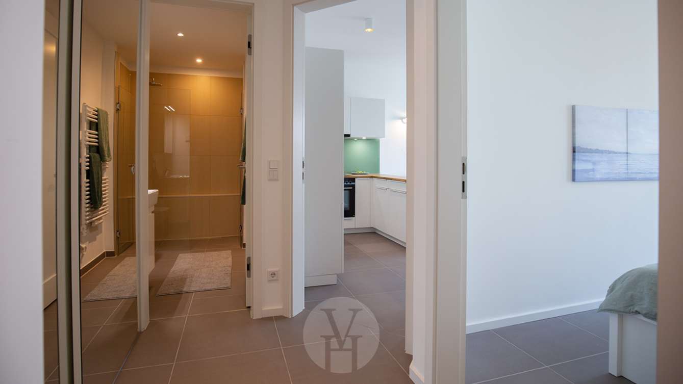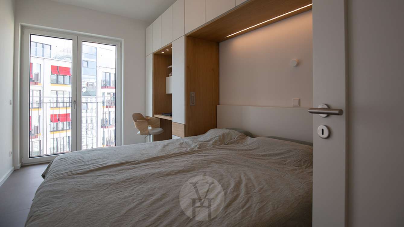 Das Highlight der Wohnung ist zweifellos das clever konzipierte Schlafzimmer, das trotz der kompakten Größe für ausreichend Stauraum und Komfort sorgt.
