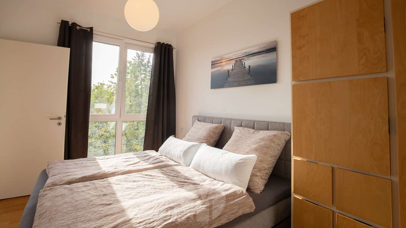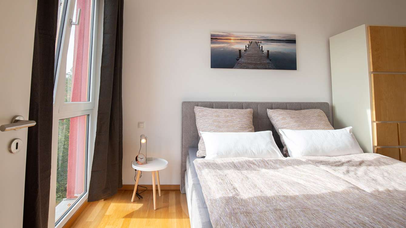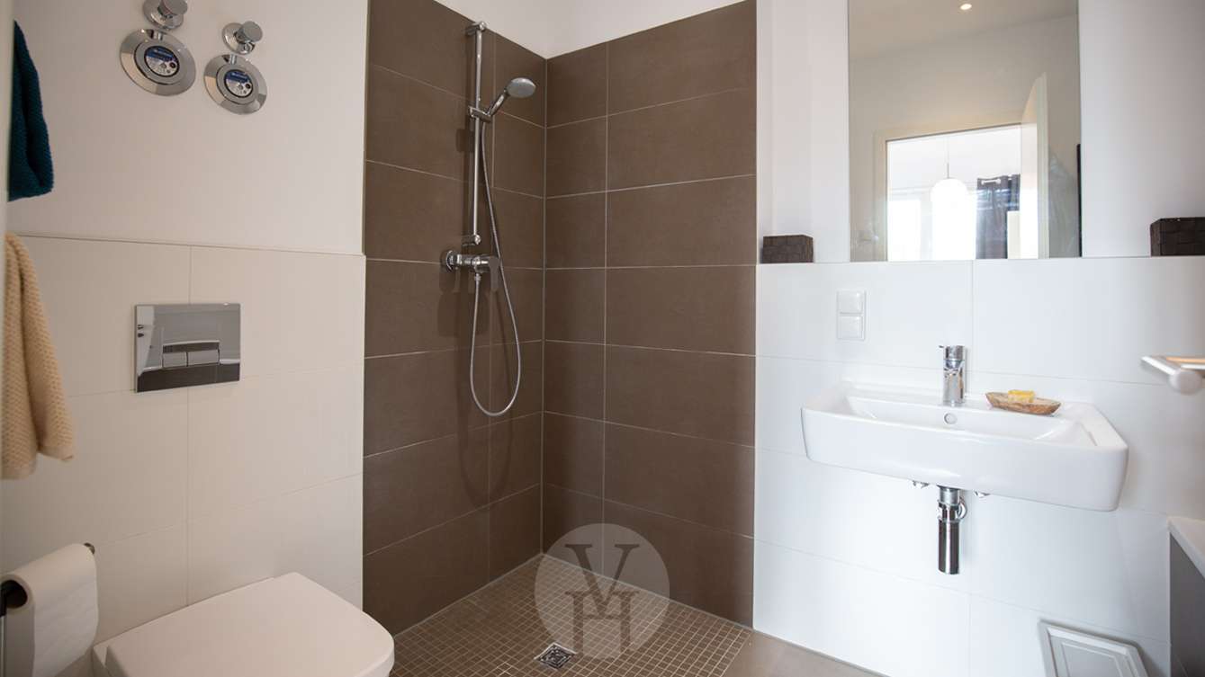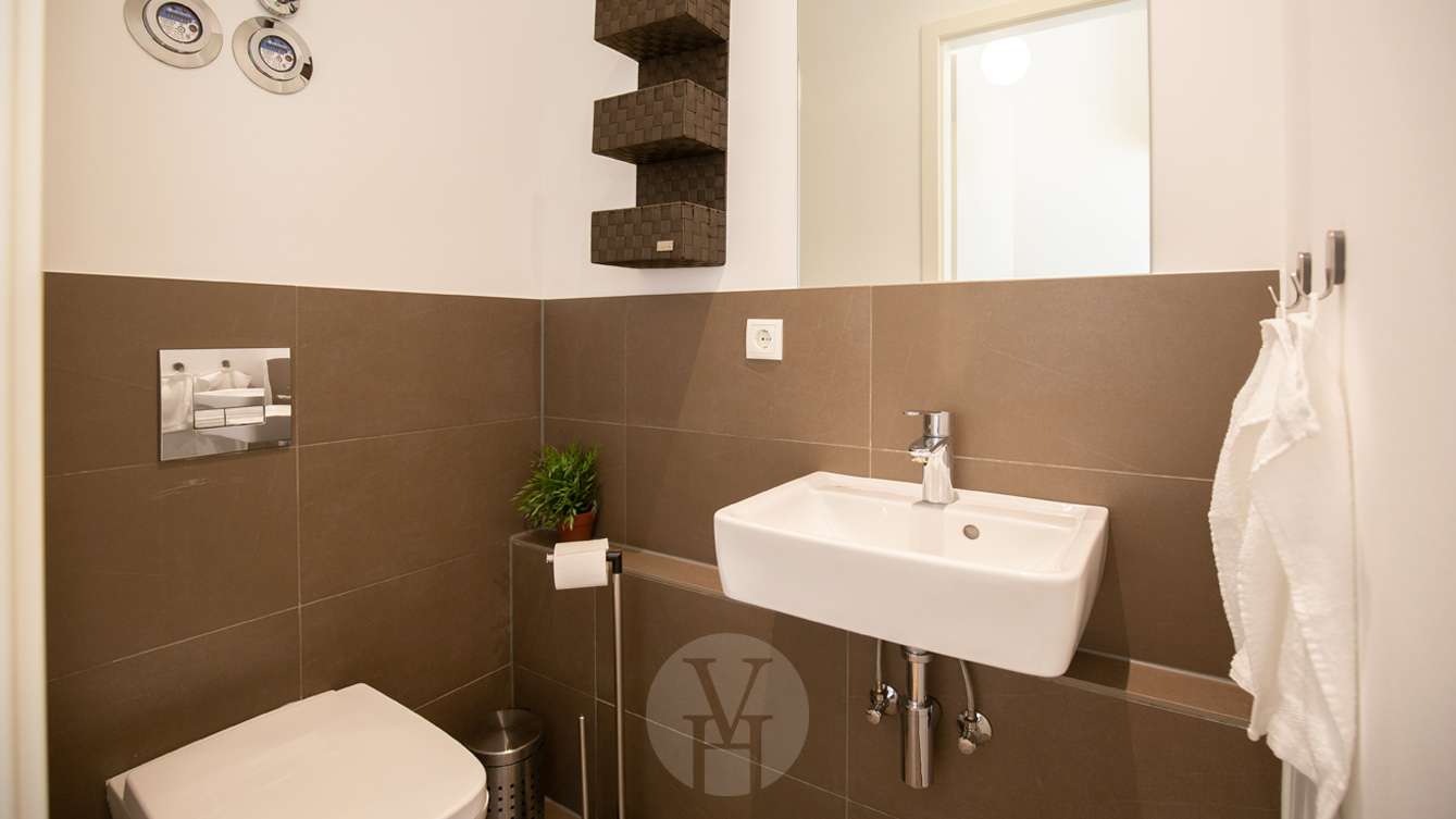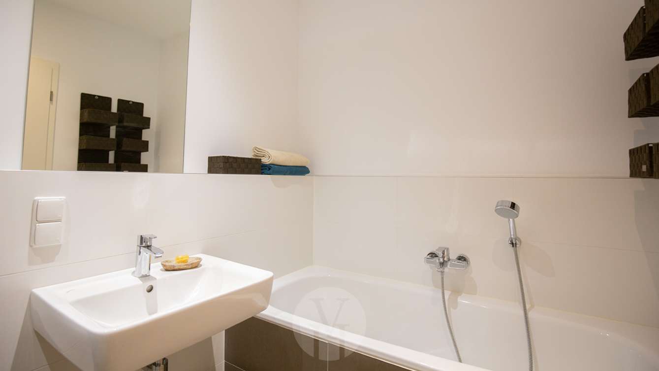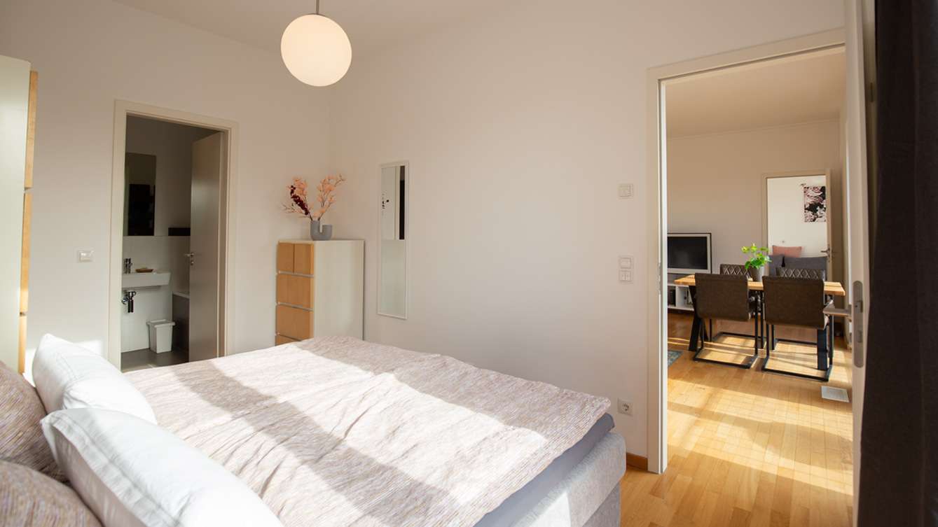Zwei separate Schlafzimmer bieten ausreichend Rückzugsmöglichkeiten, während das Badezimmer alle notwendigen Annehmlichkeiten für den täglichen Komfort bereithält.