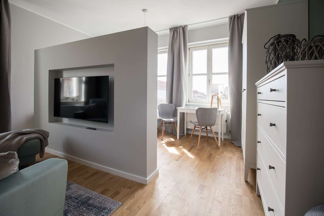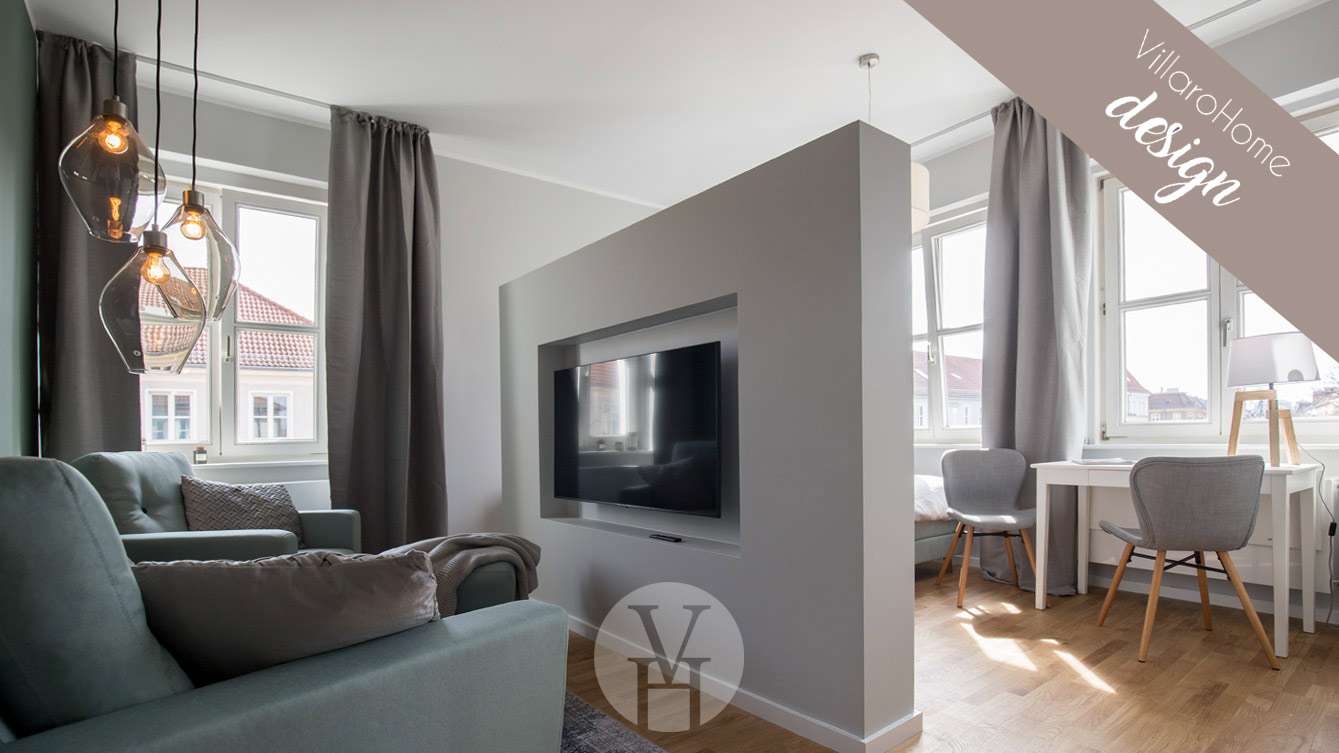 Diese clever geschnittene 1-Zimmer-Wohnung im 4. Obergeschoss überzeugt durch ihre durchdachte Raumaufteilung, die auf nur 38 m² ein echtes Wohngefühl schafft. Eine geschickt integrierte Trennwand unterteilt den Wohnbereich in einen gemütlichen Rückzugsbereich zum Schlafen und einen gemütlichen Wohnbereich.