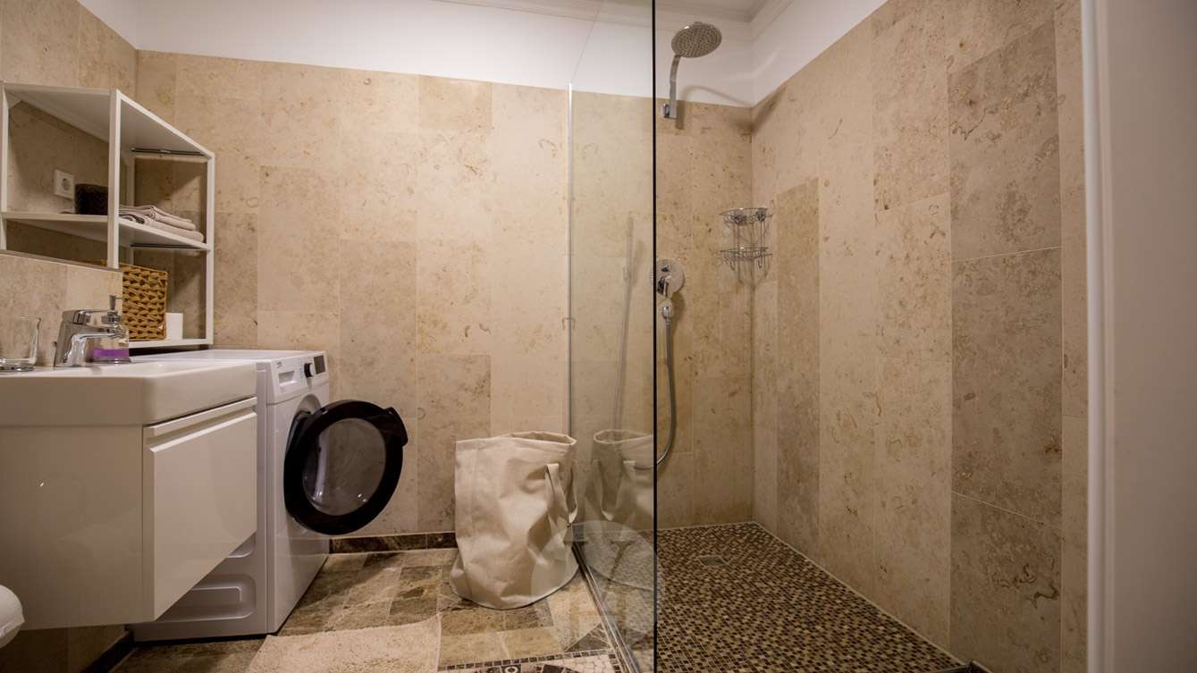 Reinigungsutensilien wie Staubsauger, Bügelbrett und Bügeleisen sowie Bettwäsche und Handtücher sind vorhanden.